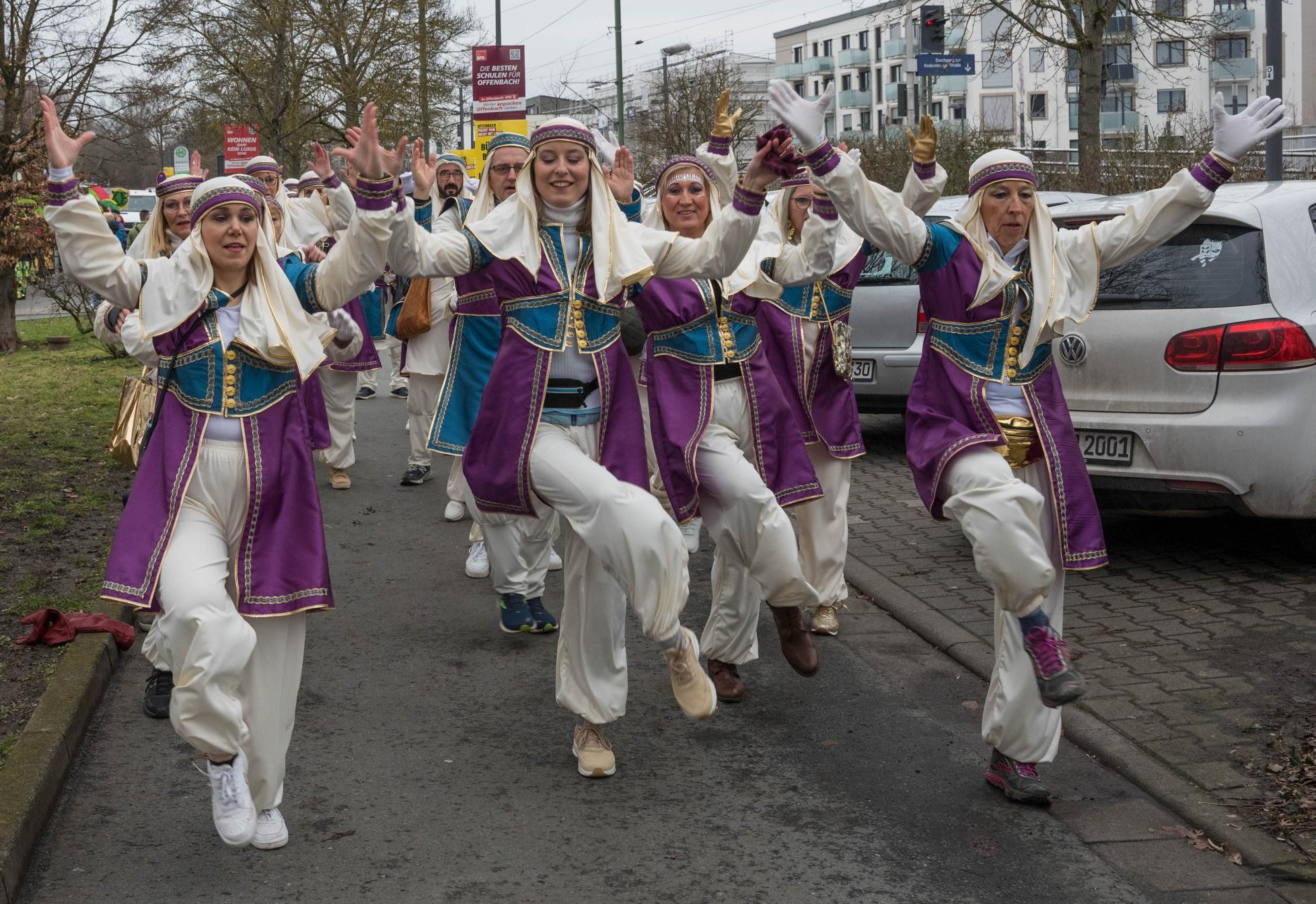 Auch dieses Jahr waren wir beim Bieberer Faschingsumzug dabei und nahmen die Zuschauer diesmal mit auf eine Reise in den Orient zum Märchen von 1001 Nacht. Mit zwei Choreografien, die in vorigen Trainings wochenlang geübt wurden, wurde uns während des Umzugs trotz frischer Temperaturen zum Glück nicht kalt.