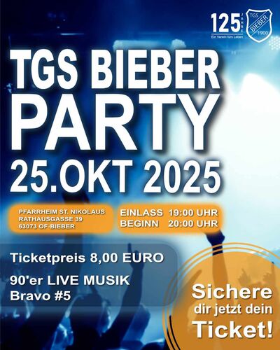 Große TGS Bieber Party mit 90er-Livemusik der Band Bravo #5