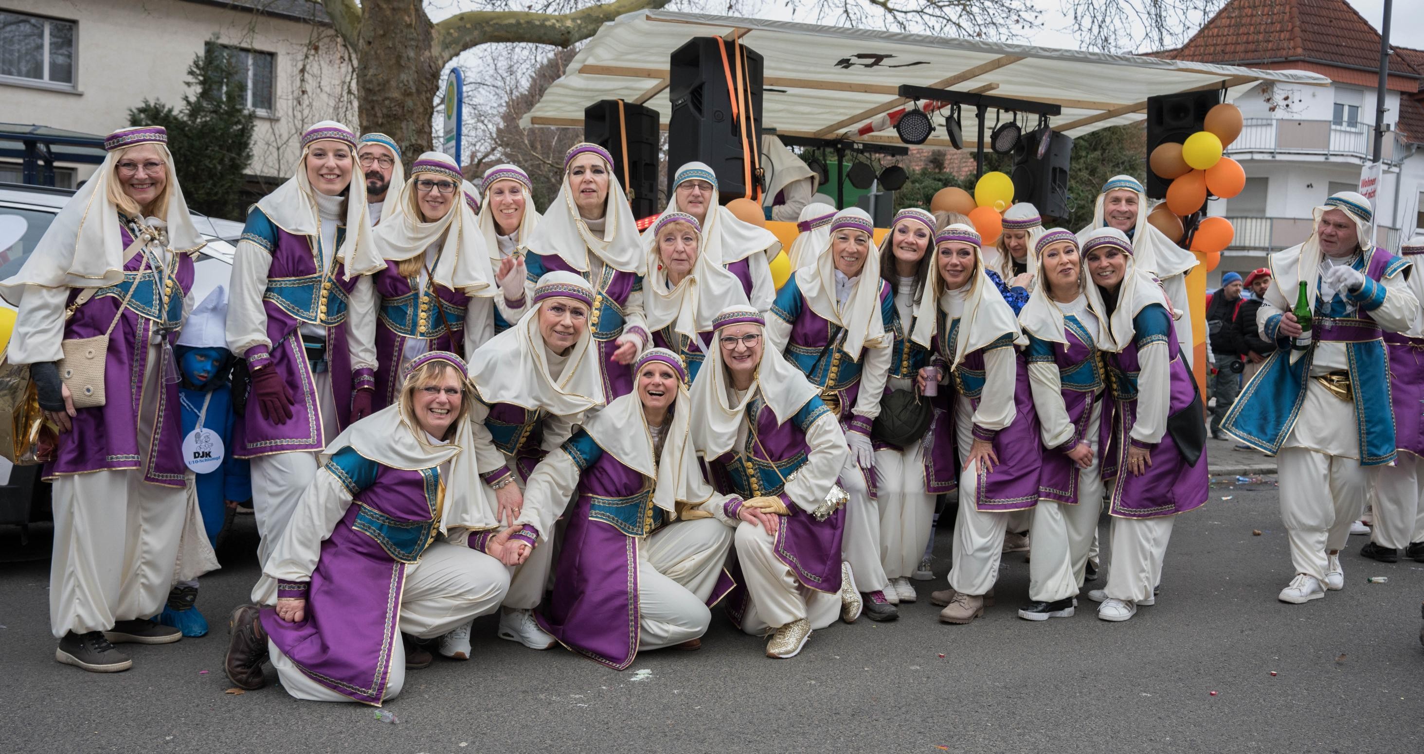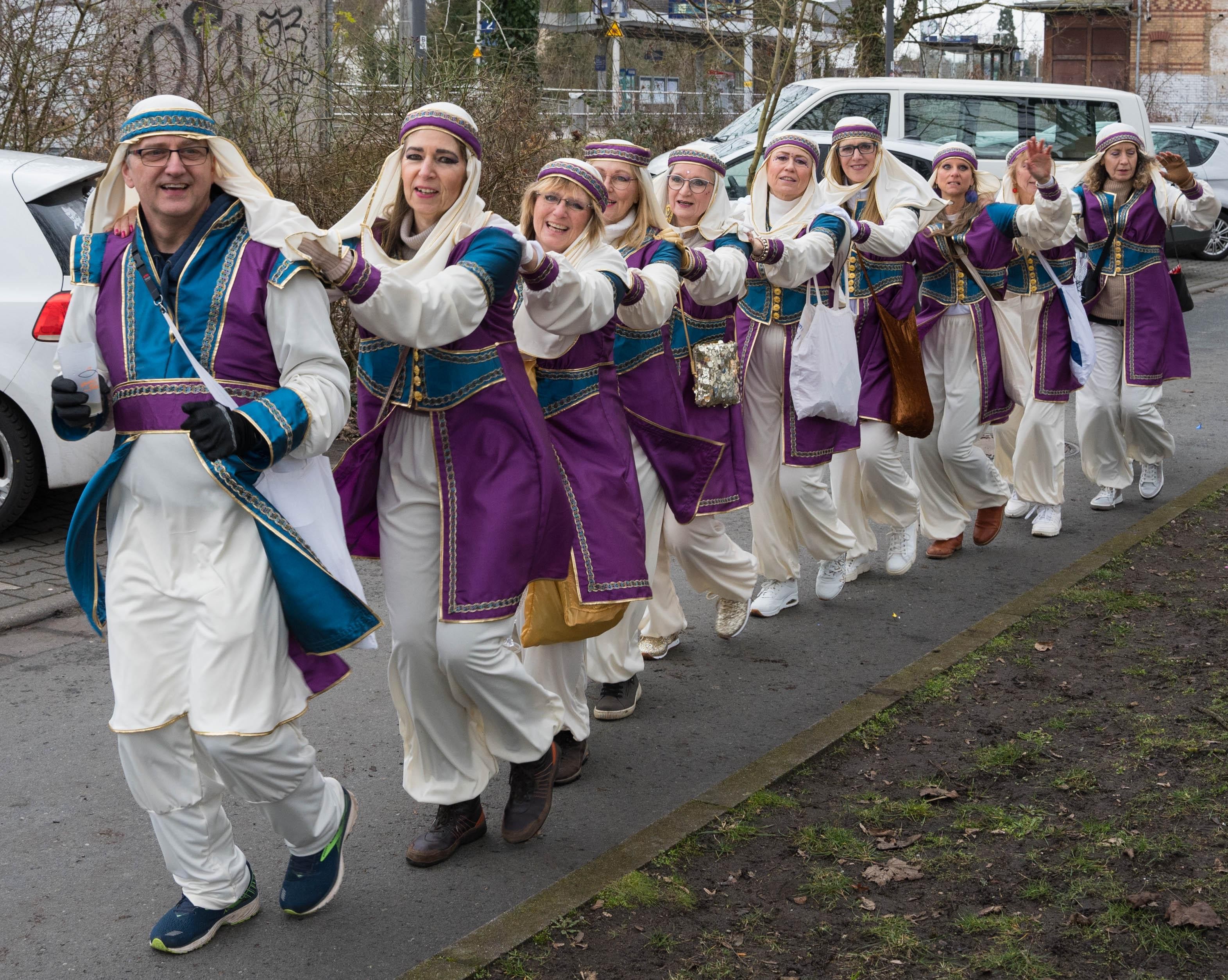 Auch dieses Jahr waren wir beim Bieberer Faschingsumzug dabei und nahmen die Zuschauer diesmal mit auf eine Reise in den Orient zum Märchen von 1001 Nacht. Mit zwei Choreografien, die in vorigen Trainings wochenlang geübt wurden, wurde uns während des Umzugs trotz frischer Temperaturen zum Glück nicht kalt.
