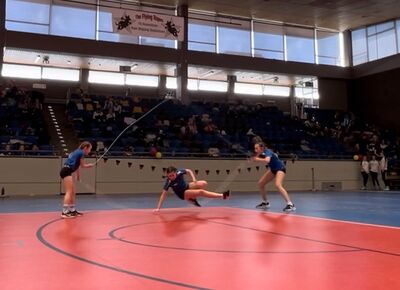 Los ging es dann am Morgen des 25.04., als wir uns auf den Weg zur Großsporthalle in Rüsselsheim machten. Schon beim Einlauf wurde klar, das ist ein ganz besonderer Tag für unsere Skipper:innen. Nach dem Einlauf wurden zuerst die Speed Wettkämpfe ausgetragen, ehe um die Mittagszeit der erste von drei Freestyle Durchgängen startete. Den Anfang für die TGS Bieber machten Enno, Emma und Lisbeth mit ihrem Double Dutch Single Freestyle. Im zweiten Durchgang präsentierten dann Jule, Finja und Elisabeth in der AK 3 selbigen auf der Fläche.